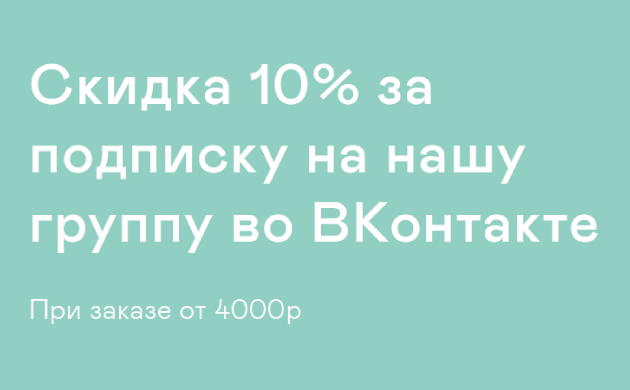 Скидка 10% за подписку на сообщество в ВКонтакте
