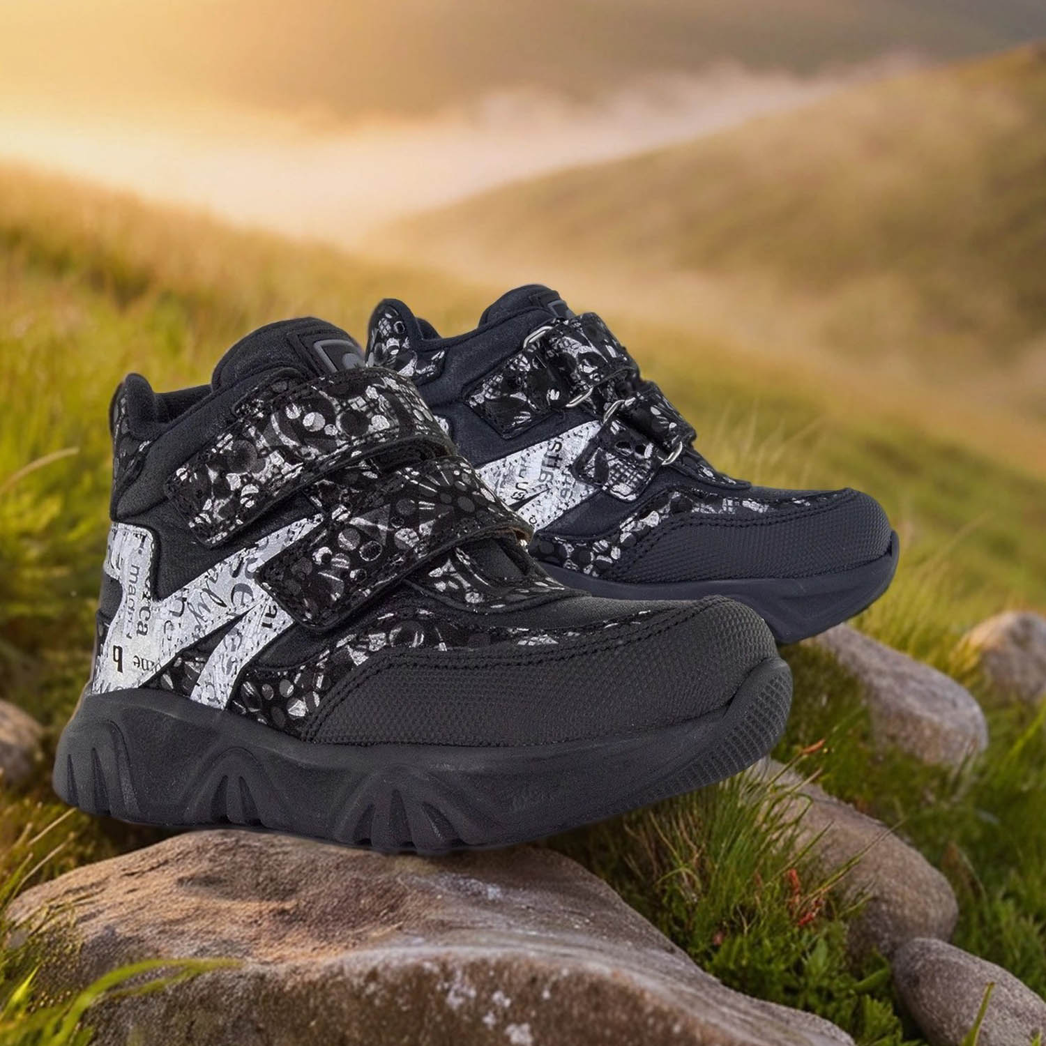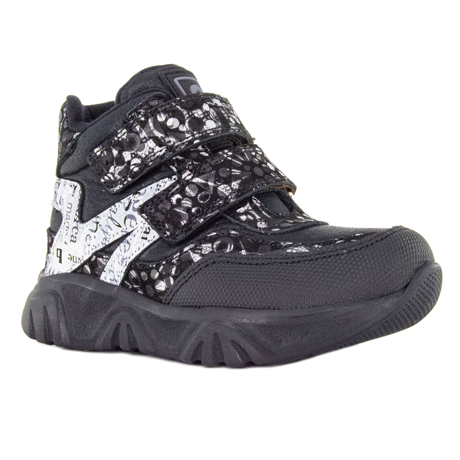 За счет широкой раскрываемости и удобной застежки обувь легко снимать и надевать, а нескользящая подошва снижает риск поскользнуться на любых типах поверхности. Ортопедические осенние детские ботинки Orthoboom 82123-22 черный с графическим принтом прошли клинические испытания, модель сертифицирована для безопасного использования в детском возрасте.