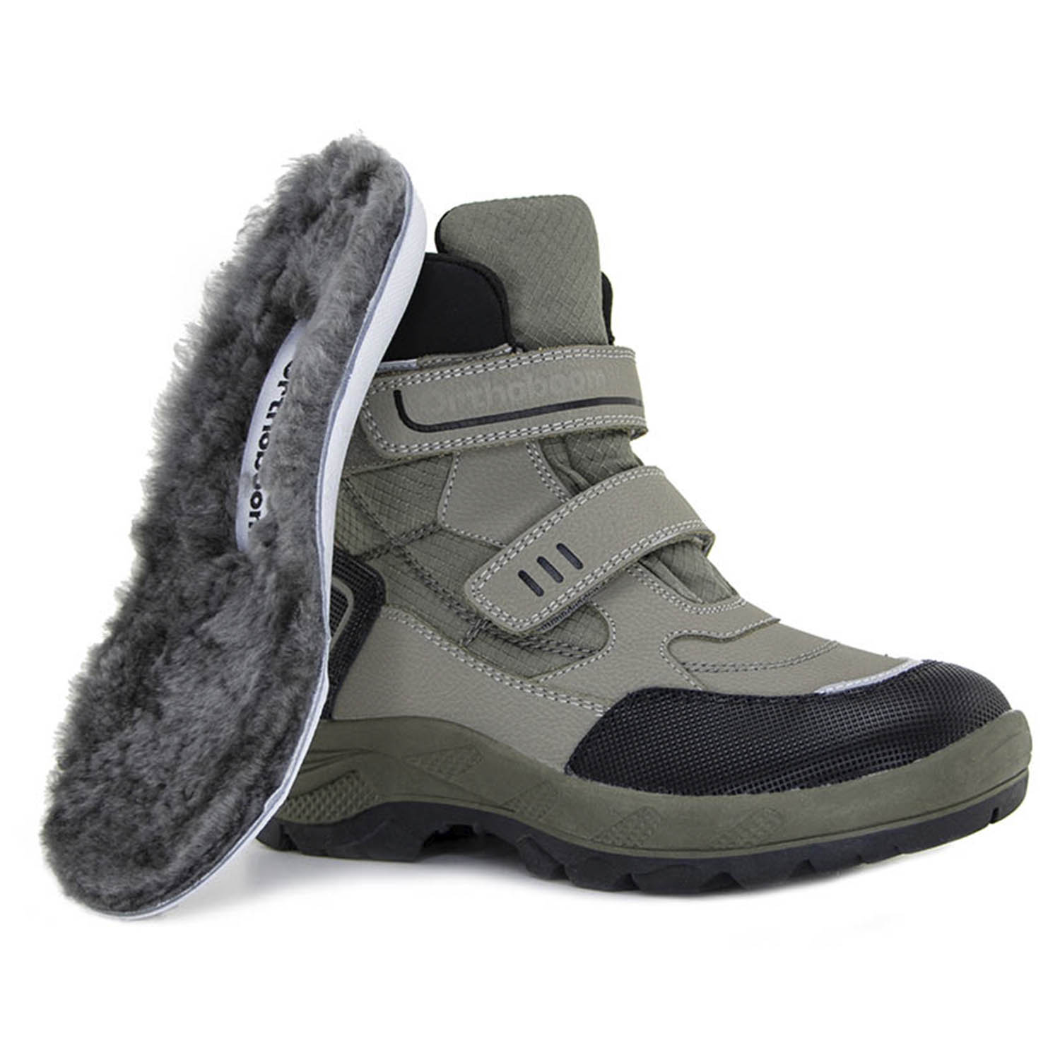 За счет широкой раскрываемости и удобной застежки обувь легко снимать и надевать, а нескользящая подошва снижает риск поскользнуться на любых типах поверхности. Ортопедические зимние детские ботинки 83694-36 хаки прошли клинические испытания, модель сертифицирована для безопасного использования в детском возрасте.