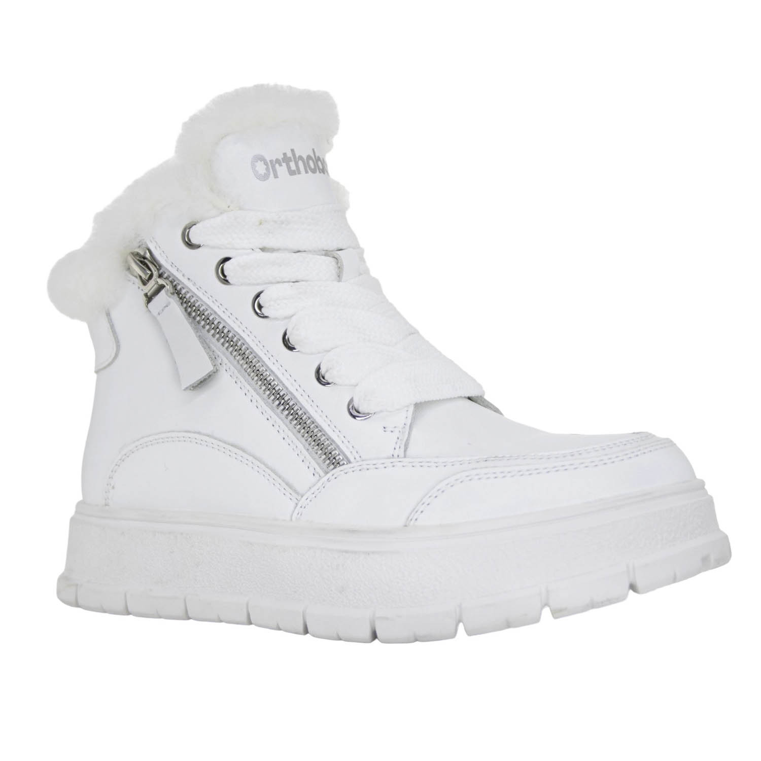 Женские зимние ботинки выполнены из дышащих материалов: верх - натуральная кожа , подклад - шерсть, что делает данную ортопедическую обувь комфортной и долговечной. Специальная подошва не скользит и отлично амортизирует ударные нагрузки. Модель ботинки Orthoboom 88125-44 белоснежный разработана европейскими дизайнерами с учетом актуальных модных трендов.