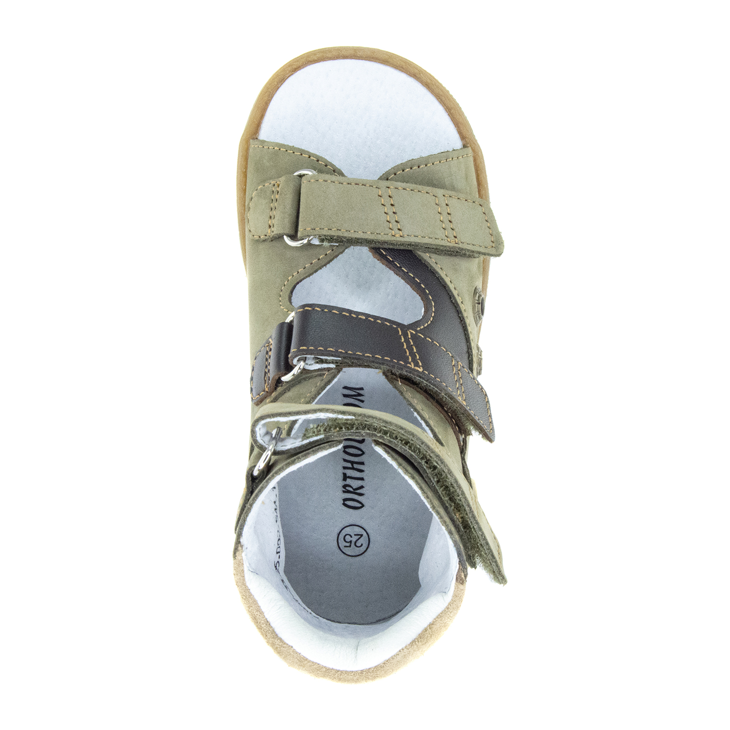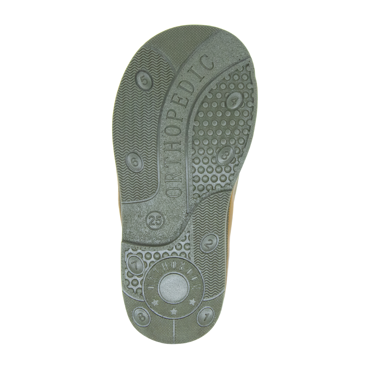 Фирменная съемная стелька Orthoboom. Разработана специально для детской обуви. Имеет наружнюю и внутреннюю выкладку продольного свода для правильного формирования стоп. Углубление под пятку предотвращает заваливание стоп.