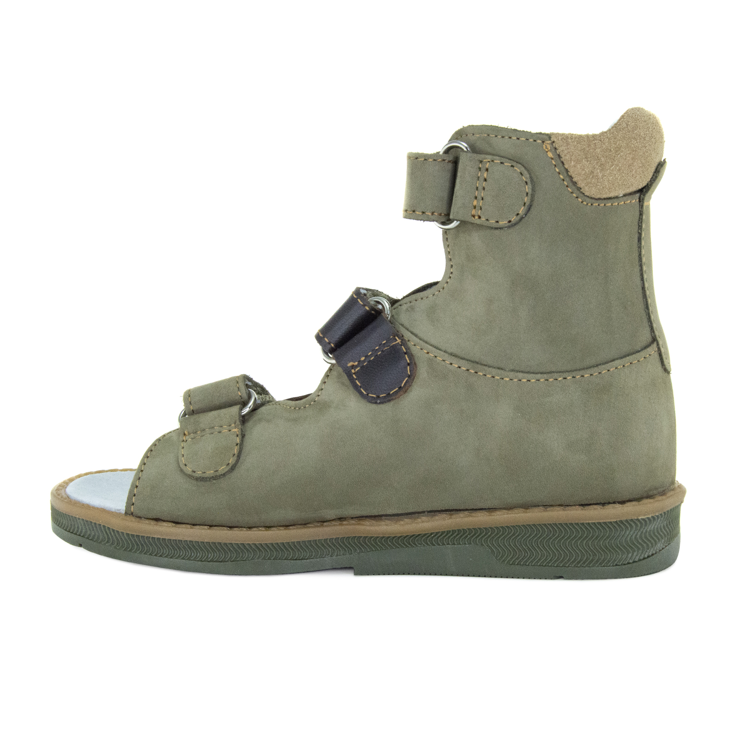 Высокий жесткий берц высотой 8-12 см (в зависимости от размера) с удлиненными боковыми крыльями. В конструкции обуви Orthoboom высокий берц содержит выемку для разгрузки ахиллова сухожилия. Имеет мягкие вставки в области лодыжки – боковые пелоты и кант. Фиксирует пяточно-таранный и голеностопный сустав, способствует правильному формированию стопы и препятствует дальнейшей деформации.