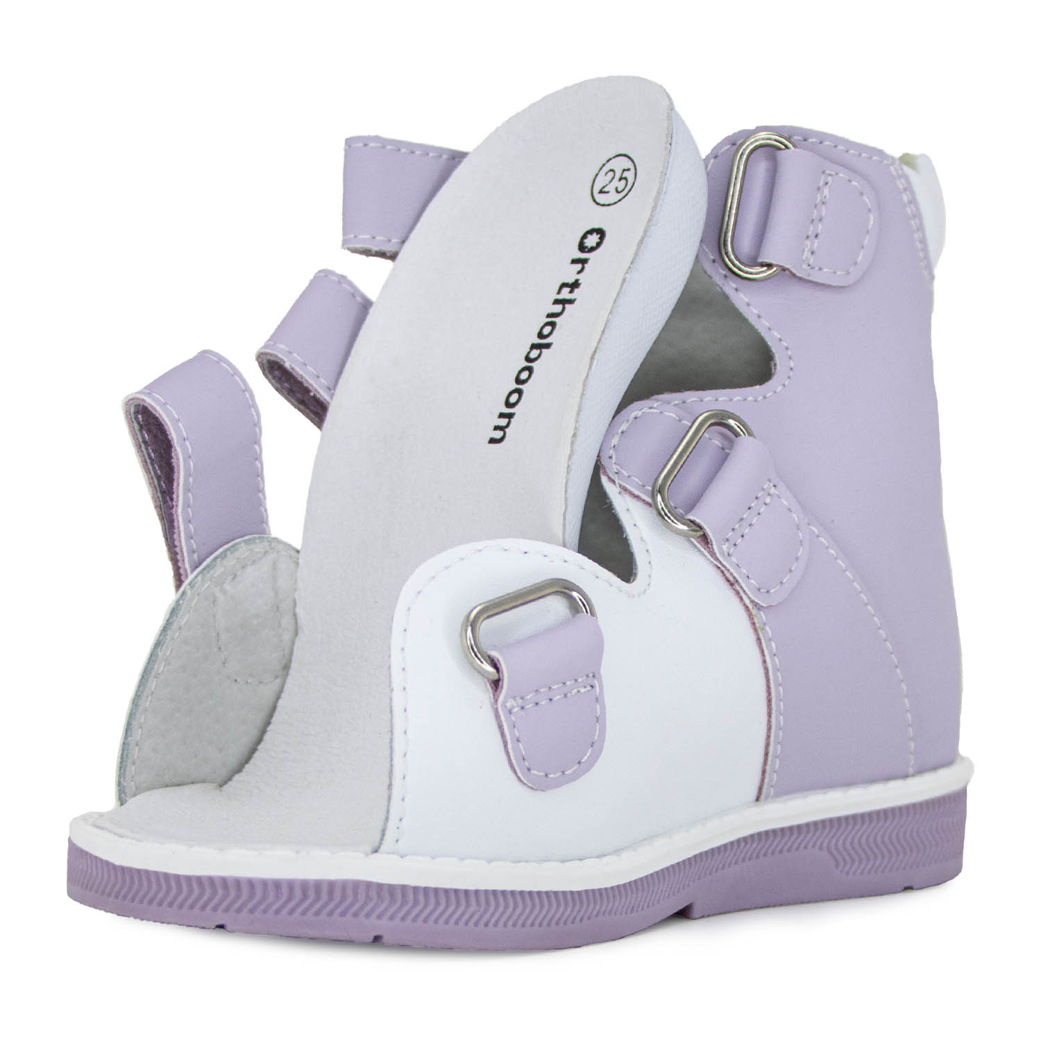 Детские ботинки летние Orthoboom 71597-33 сиренево-белый (Лето) — стильная и комфортная модель, созданная для предупреждения и корректировки плоскостопия. Она надежно фиксирует стопы, поддерживает наружный и внутренний своды и обеспечивает удобство при ходьбе, снижая и амортизируя ударные нагрузки на суставы и позвоночник. Практичные материалы верха (натуральная кожа) и подклада (кожподкладка) гарантируют идеальный микроклимат и отвечают за износостойкость обуви, а сводоформирующие стельки и жесткий задник препятствуют развитию деформации стоп, помогают в формировании правильной походки и осанки.