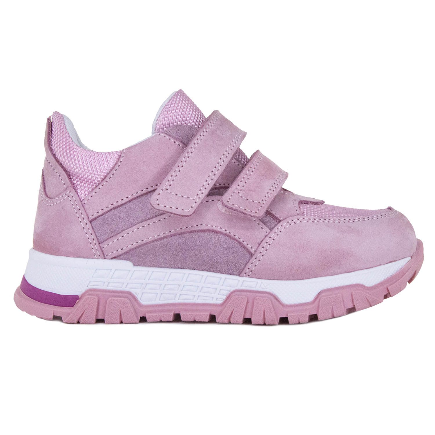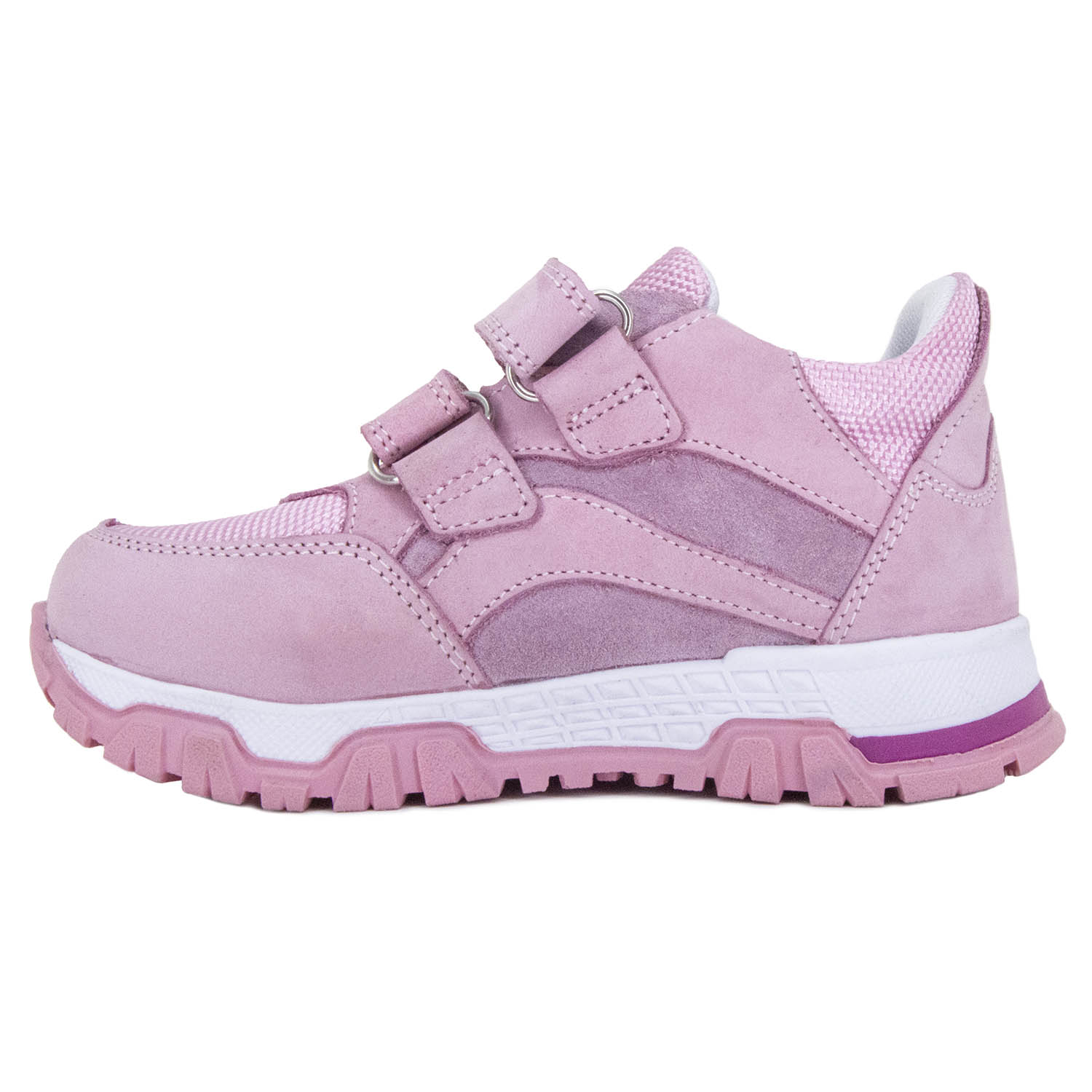 За счет широкой раскрываемости и удобной застежки обувь легко снимать и надевать, а нескользящая подошва снижает риск поскользнуться на любых типах поверхности. Ортопедические осенние детские кроссовки Orthoboom 31057-01 розово-лиловый прошли клинические испытания, модель сертифицирована для безопасного использования в детском возрасте.