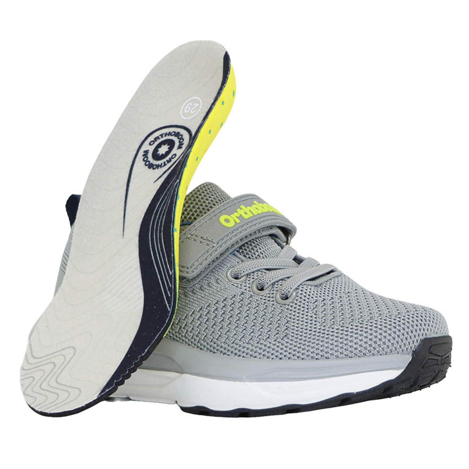 Фирменная съемная стелька Orthoboom. Разработана специально для детской обуви. Имеет наружнюю и внутреннюю выкладку продольного свода для правильного формирования стоп. Углубление под пятку предотвращает заваливание стоп.