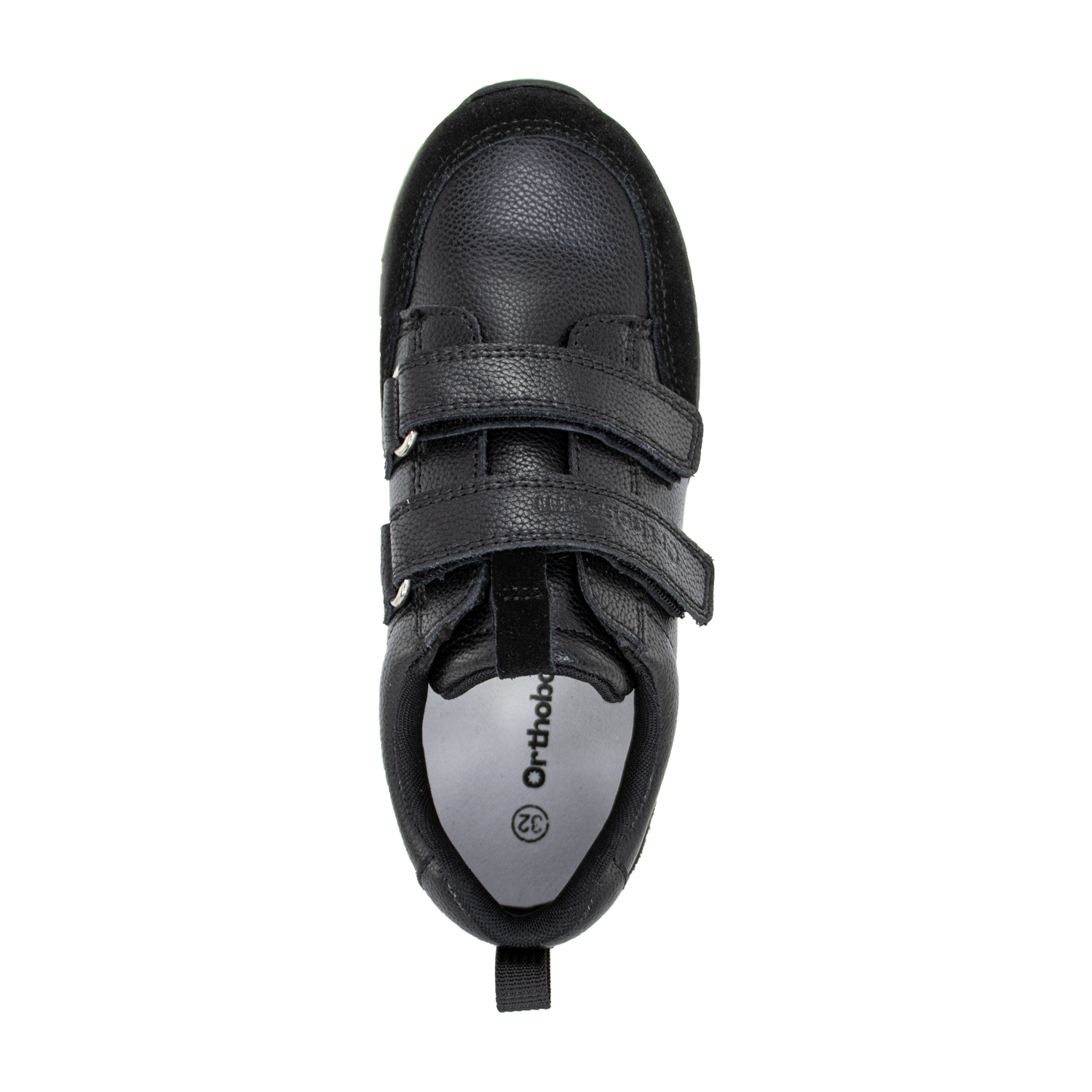 Фирменная съемная стелька Orthoboom. Разработана специально для детской обуви. Имеет наружнюю и внутреннюю выкладку продольного свода для правильного формирования стоп. Углубление под пятку предотвращает заваливание стоп.