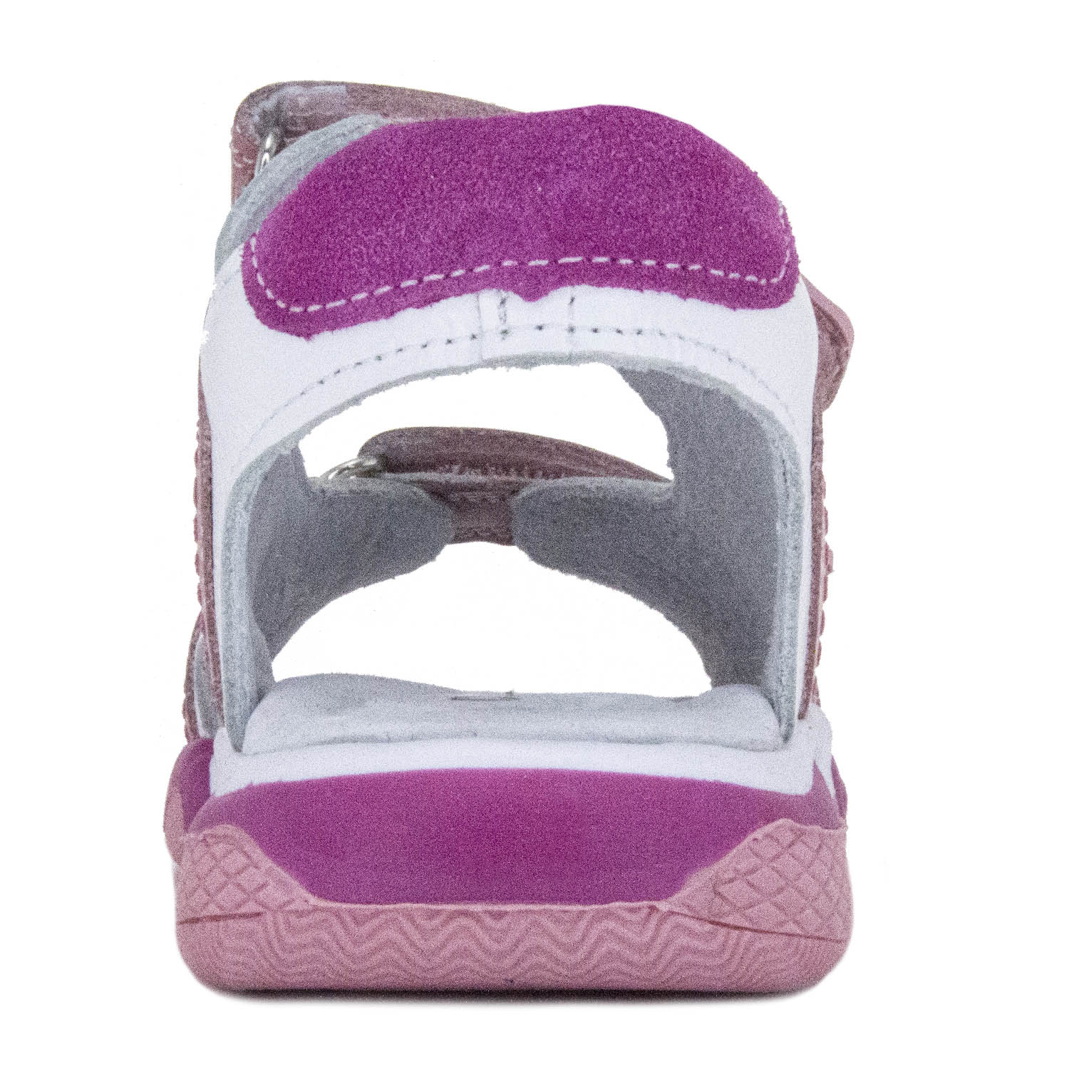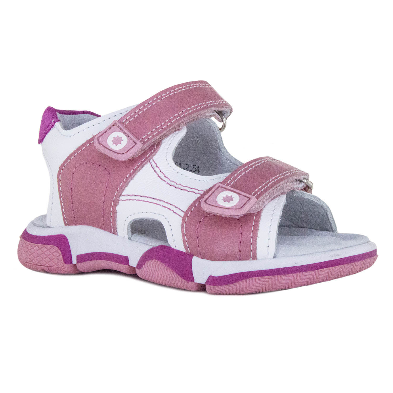 Стильные детские сандалии специально созданы для профилактики и коррекции начальных форм плоскостопия. Комфортная летняя обувь для девочек точно фиксирует стопу, плотный задник PreVent не дает заваливаться пятке. Съемная ортопедическая стелька StepEx поддерживает наружный и внутренний своды стопы и дает необходимую амортизацию при ходьбе. Ортопедические сандалии изготовлены из практичных материалов: верх - натуральная кожа и подклад - кожподкладка, что гарантирует идеальный микроклимат и износостойкость обуви.