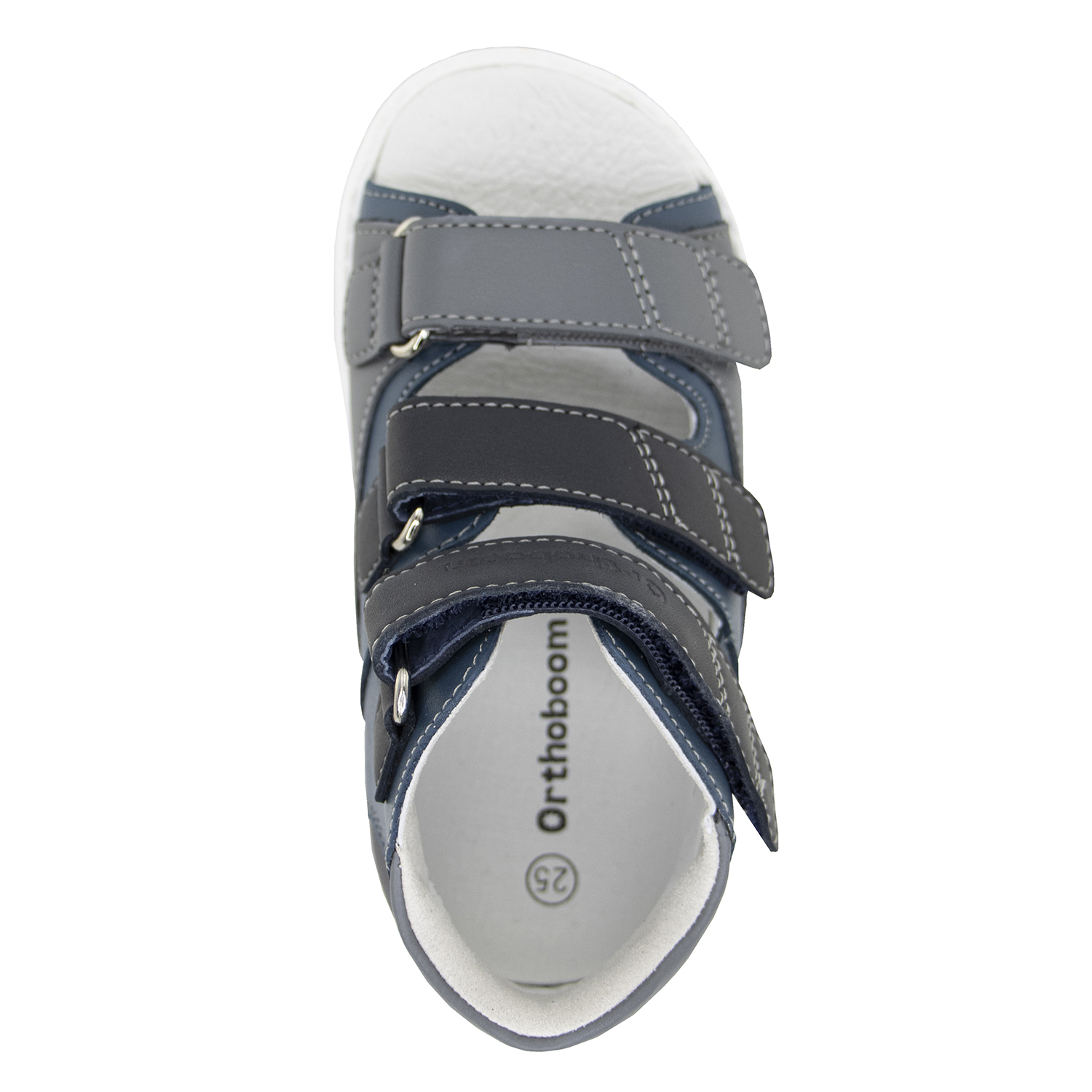 Фирменная съемная стелька Orthoboom. Разработана специально для детской обуви. Имеет наружнюю и внутреннюю выкладку продольного свода для правильного формирования стоп. Углубление под пятку предотвращает заваливание стоп.