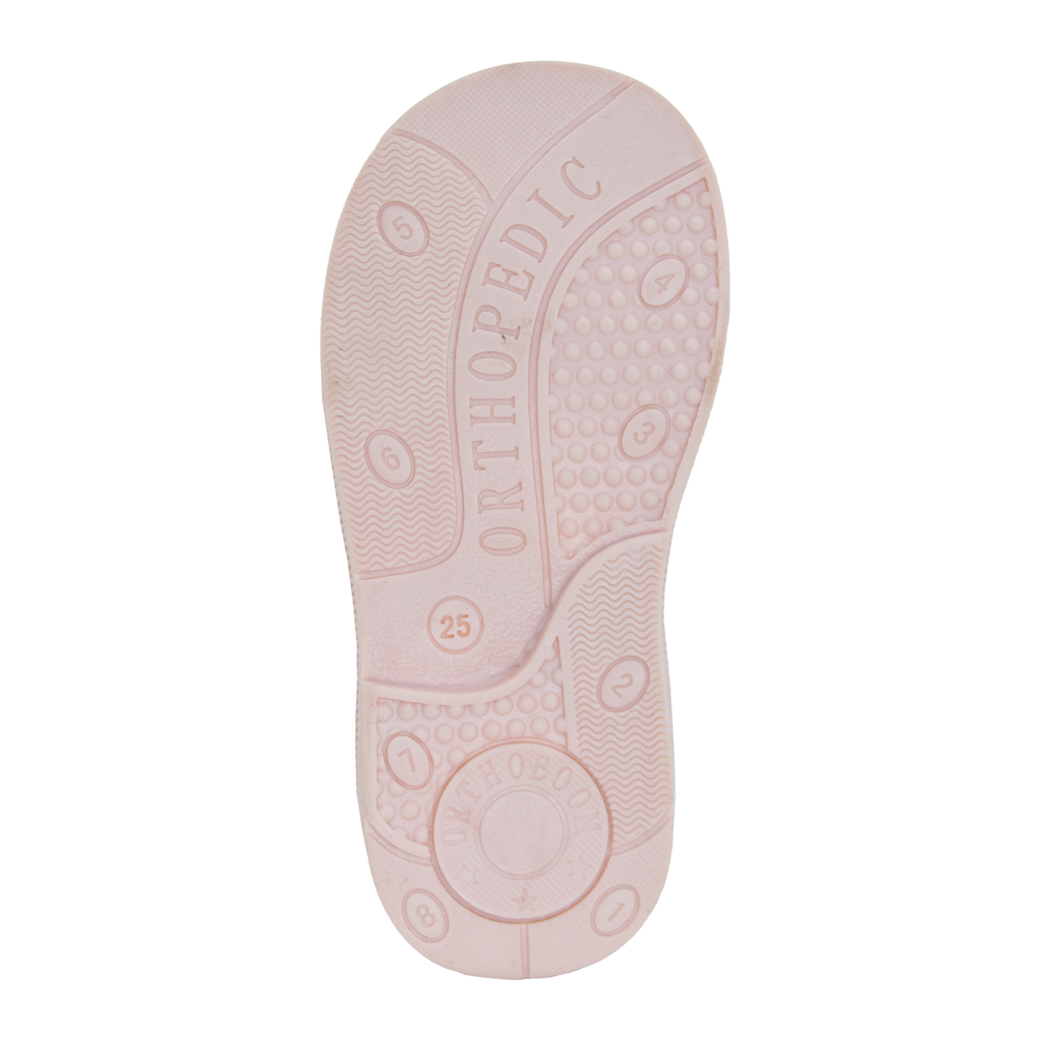 Разработка Orthoboom. Система домашней диагностики на подошве с цифрами. Цифры обозначают зоны стирания. По степени изношенности подошвы в той или иной зоне можно судить о том, правильно ли идет развитие стопы малыша.