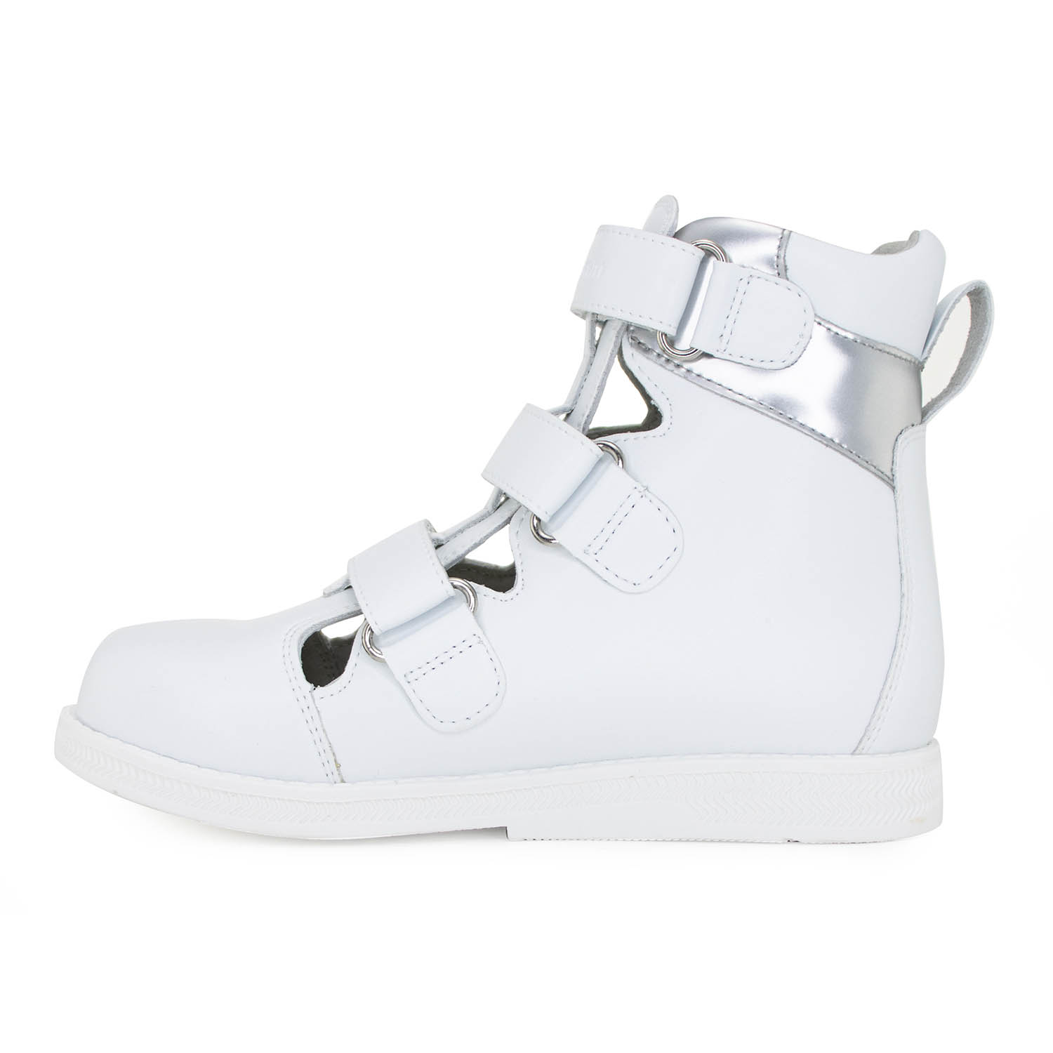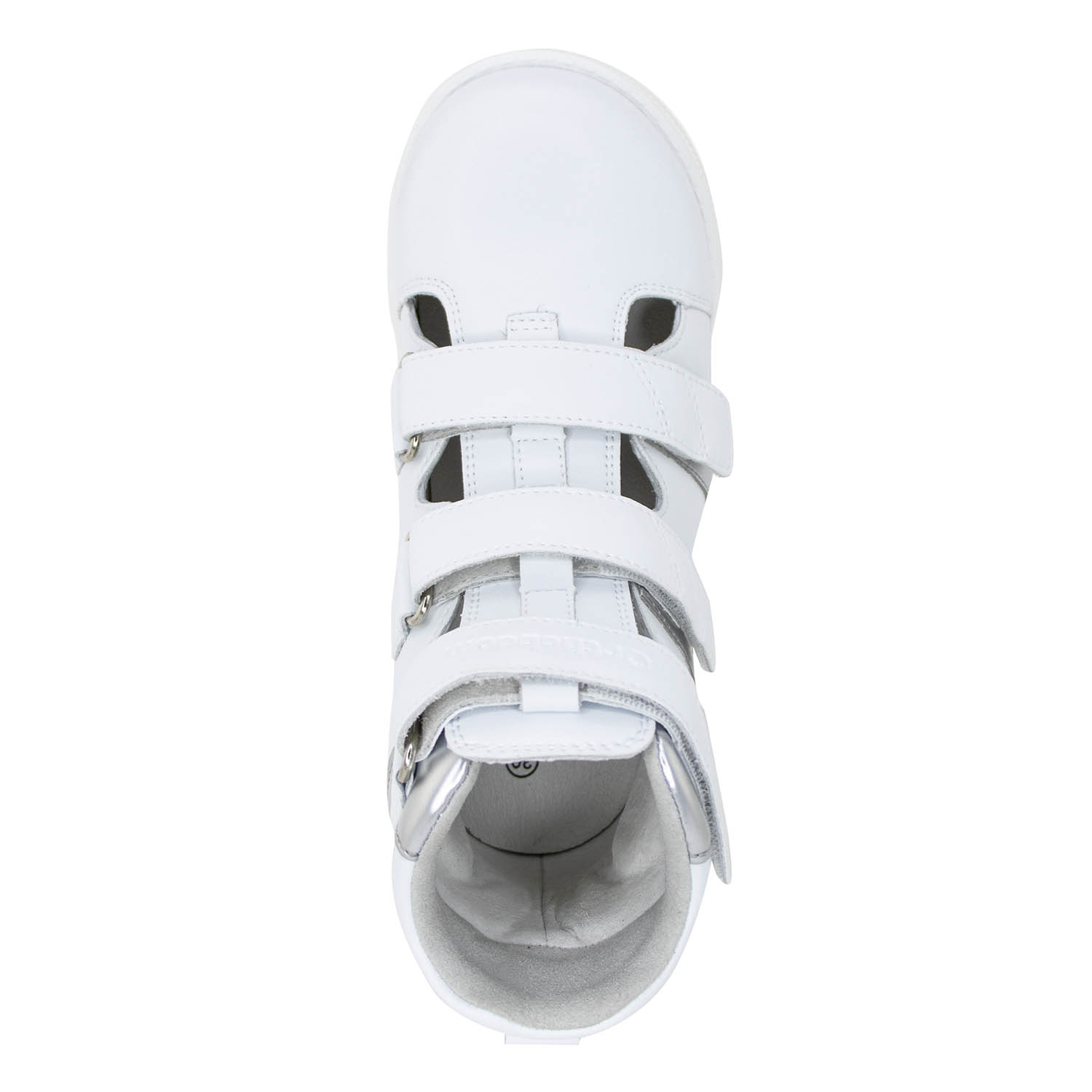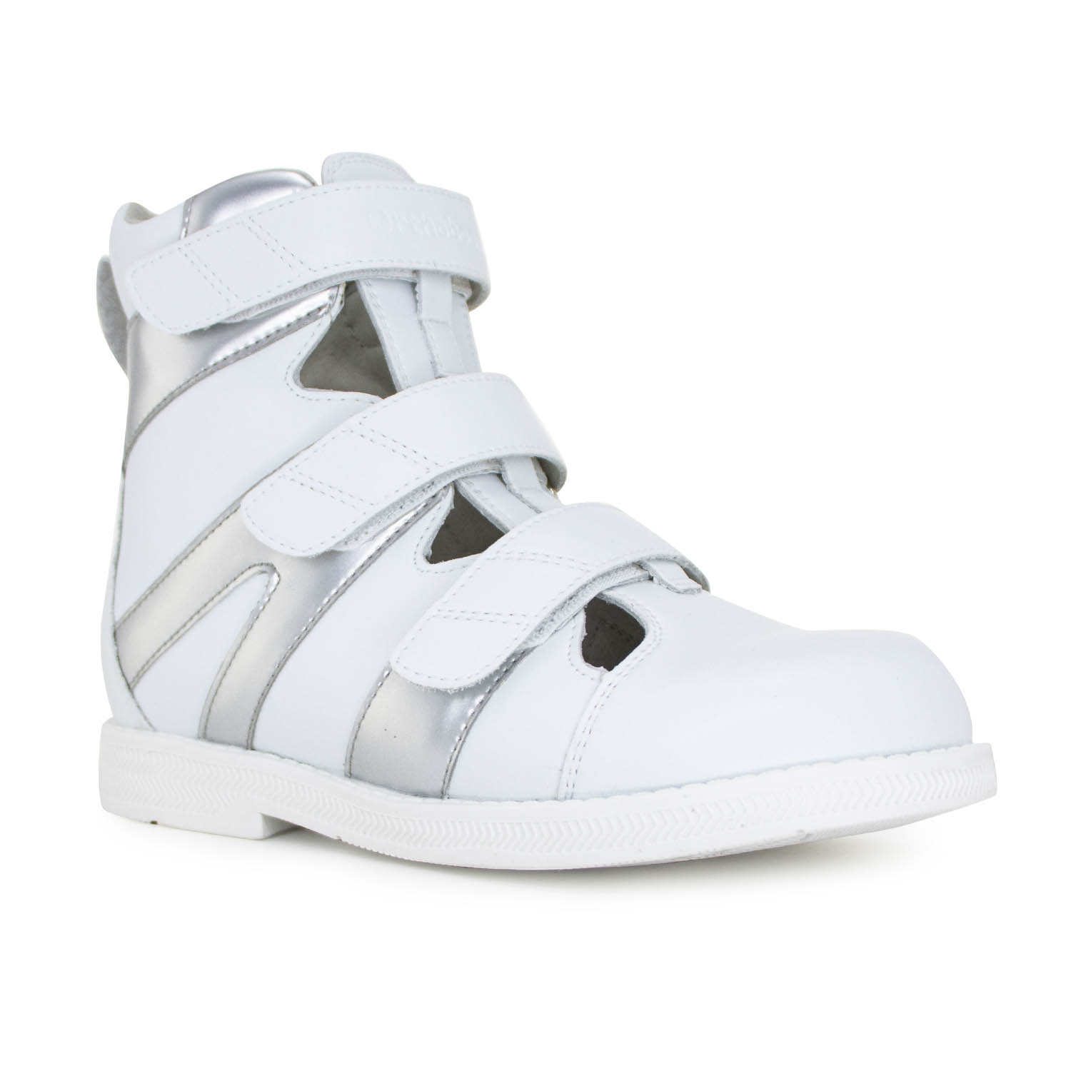 Детские сандалии Orthoboom 81597-32 белый с серебром (Лето) — стильная и комфортная модель, созданная для предупреждения и корректировки плоскостопия. Она надежно фиксирует стопы, поддерживает наружный и внутренний своды и обеспечивает удобство при ходьбе, снижая и амортизируя ударные нагрузки на суставы и позвоночник. Практичные материалы верха (натуральная кожа) и подклада (кожподкладка) гарантируют идеальный микроклимат и отвечают за износостойкость обуви, а сводоформирующие стельки и жесткий задник препятствуют развитию деформации стоп, помогают в формировании правильной походки и осанки.