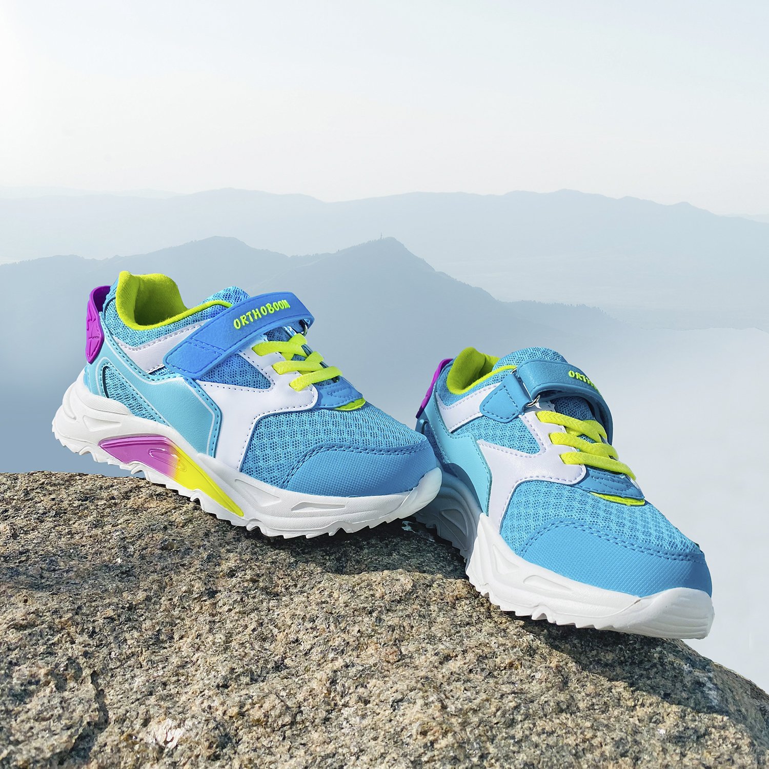 Ортопедические кроссовки Orthoboom 30225-10 бирюзовый-серый-салатовый изготовлены из дышащих практичных материалов, гарантируя идеальный микроклимат и износостойкость обуви.