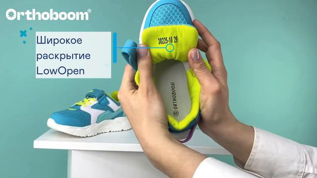 Фирменная съемная стелька Orthoboom. Разработана специально для детской обуви. Имеет наружнюю и внутреннюю выкладку продольного свода для правильного формирования стоп. Углубление под пятку предотвращает заваливание стоп.