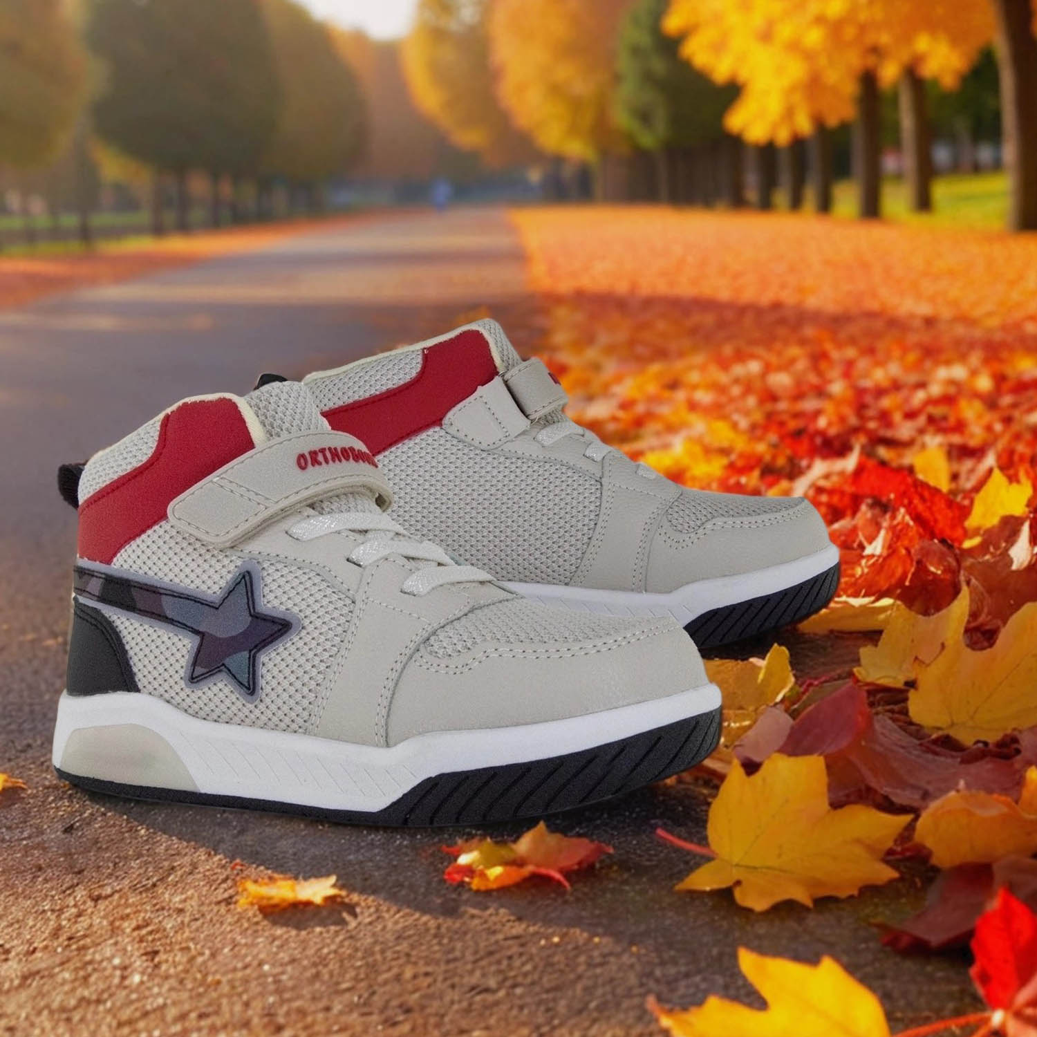 Фирменная съемная стелька Orthoboom. Разработана специально для детской обуви. Имеет наружнюю и внутреннюю выкладку продольного свода для правильного формирования стоп. Углубление под пятку предотвращает заваливание стоп.