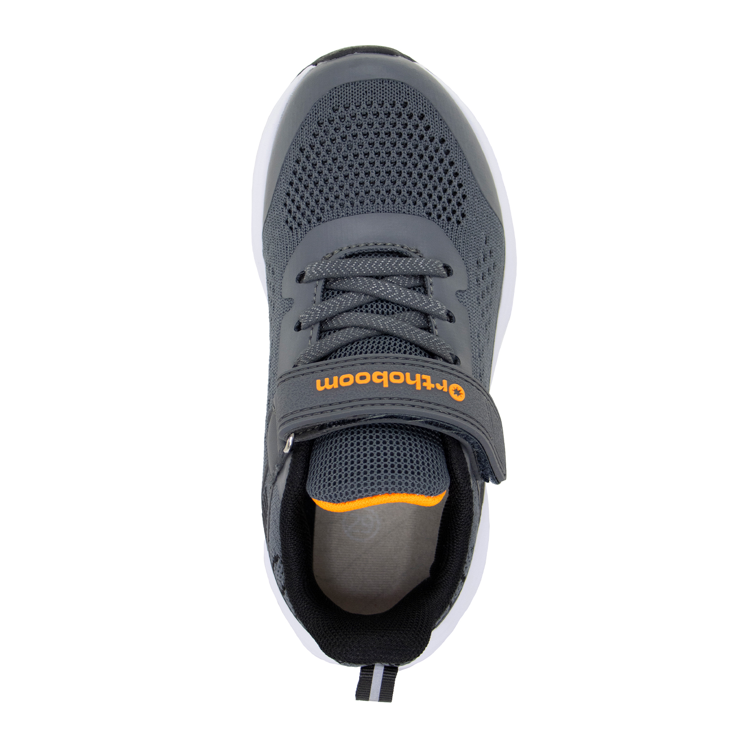 Фирменная съемная стелька Orthoboom. Разработана специально для детской обуви. Имеет наружнюю и внутреннюю выкладку продольного свода для правильного формирования стоп. Углубление под пятку предотвращает заваливание стоп.