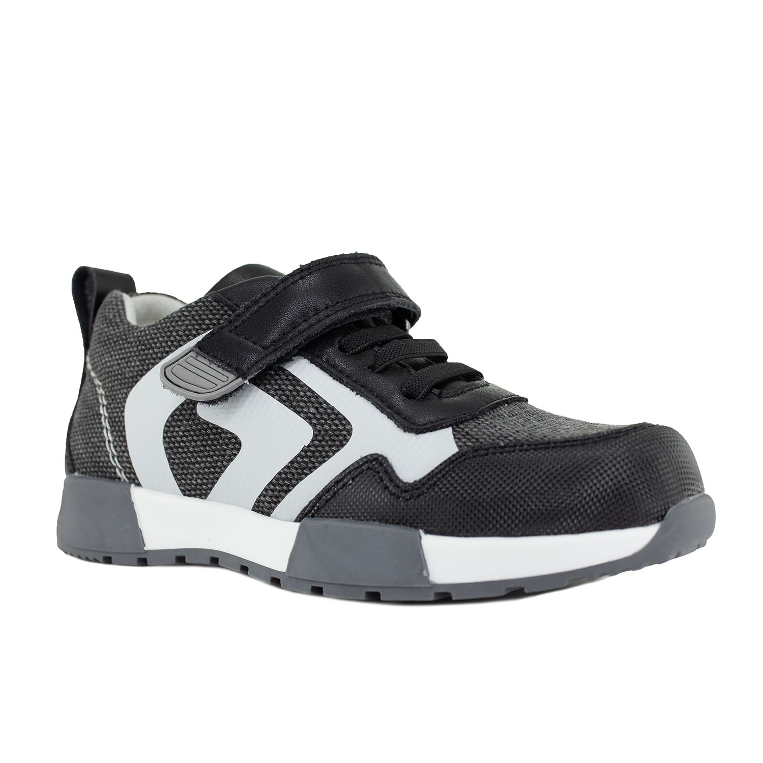 Кроссовки Orthoboom 33054-03 черный с серым (Весна - Осень) — комфортная обувь, разработанная для профилактики плоскостопия и других патологий, а также коррекции их начальных проявлений. Выполнена из натуральных материалов: текстиль/натуральная кожа — для верха, кожподкладка — для подклада. За счет высокого качества устойчива к износу и капризам погоды, еще и поддерживает оптимальный микроклимат. Специальная стелька минимизирует ударные нагрузки на ноги и позвоночник, поэтому даже при активной длительной ходьбе не будет дискомфорта.