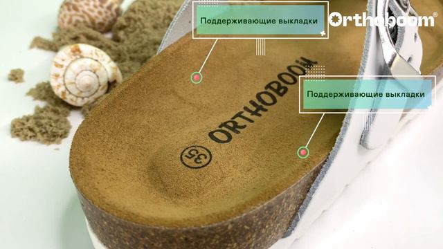 Особенностью конструкции является стелька из натуральной пробки с велюровым покрытием, обеспечивающем устойчивость даже для ног после купания. На стельке анатомическое углубление под пятку. Это значительно разгружает стопы, спину и суставы , удерживая ногу в правильном положении. Стелька также имеет четыре поддерживающие выкладки. Супинатор обеспечивает равновесие и правильную походку, предотвращает подвертывание стопы. Разделяющий выступ для пальцев снижает нагрузку на пальцы, улучшает баланс стопы, тренирует мышцы и улучшает циркуляцию крови.