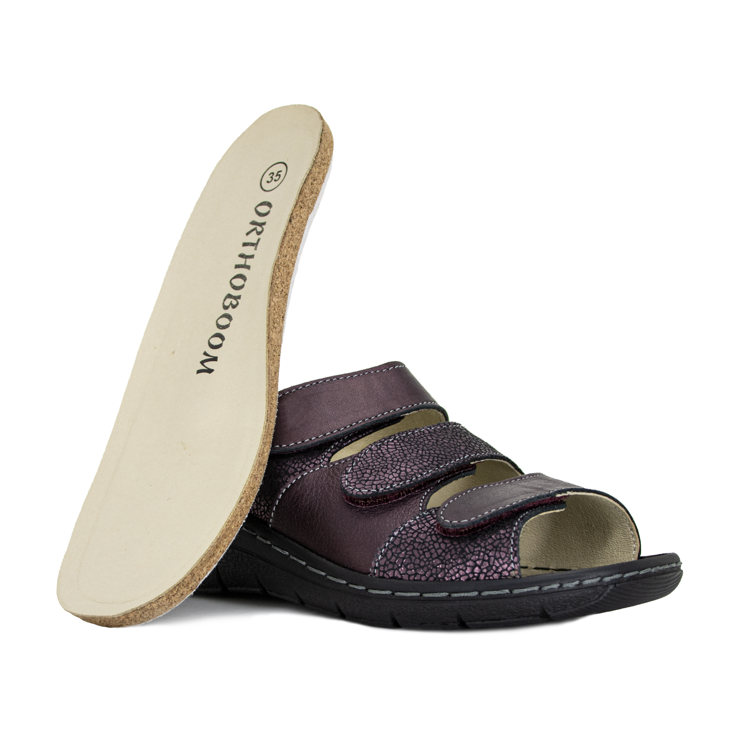 Женские сабо Orthoboom 20057-02 марсала — обувь с уникальной конструкцией, разработанной для предупреждения и корректировки нарушений строения стопы, борьбы с мозолями, натоптышами, пяточными шпорами. Амортизирующая подошва, регулировка полноты и надежная фиксация за счет удобной застежки — 3 ремня (3 липучки), анатомическая стелька обеспечивают правильное положение ноги, равномерное распределение нагрузки при ходьбе и снижение усталости. Материал верха (натуральная кожа) демонстрирует впечатляющую устойчивость к износу, а подклад (кожподкладка) не натирает даже при высокой двигательной активности. Модель разработана профессиональными дизайнерами с учетом актуальных модных трендов, ведь Лето — самое время вспомнить о стиле.