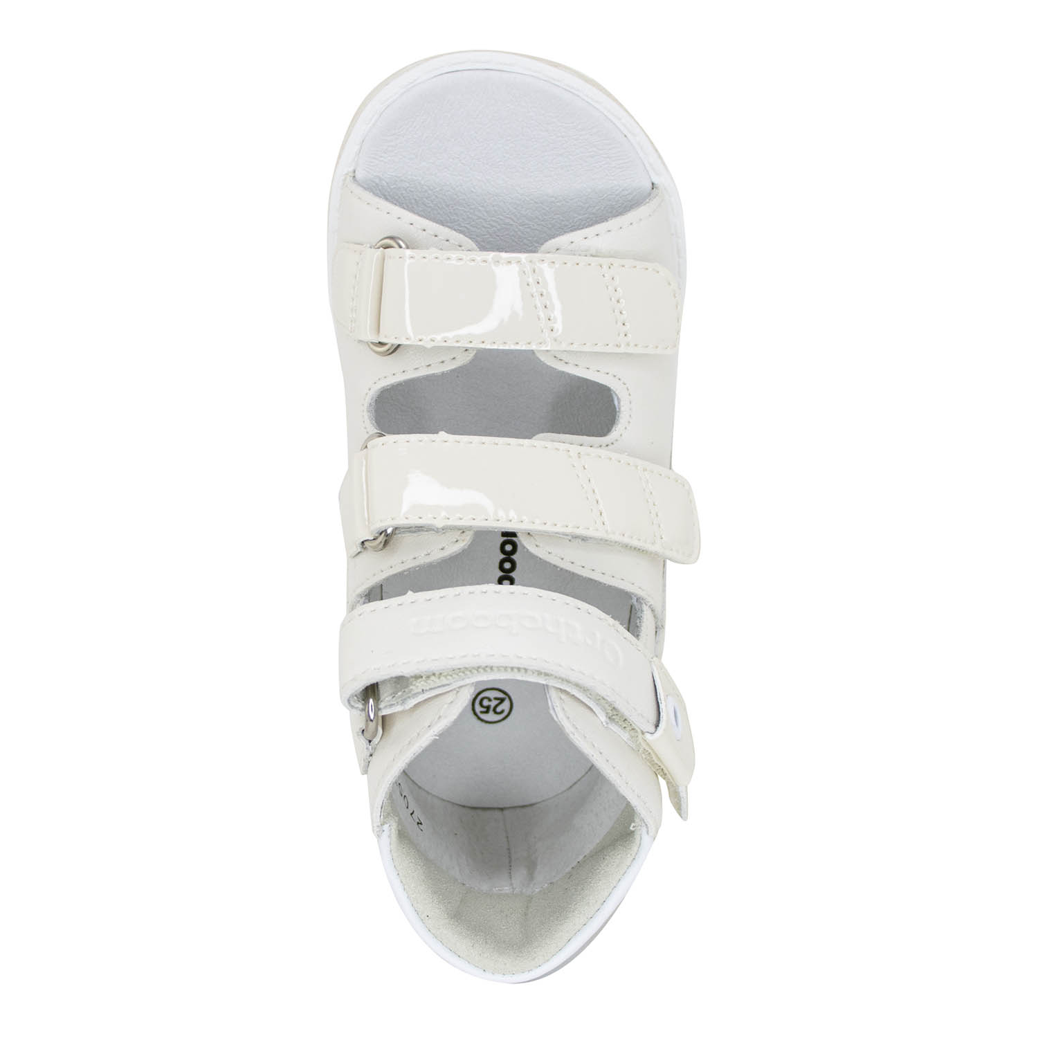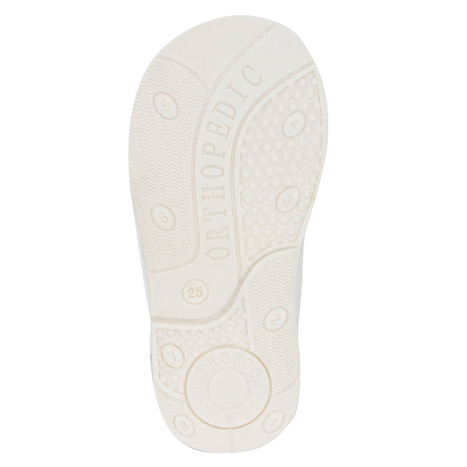 Фирменная съемная стелька Orthoboom. Разработана специально для детской обуви. Имеет наружнюю и внутреннюю выкладку продольного свода для правильного формирования стоп. Углубление под пятку предотвращает заваливание стоп.