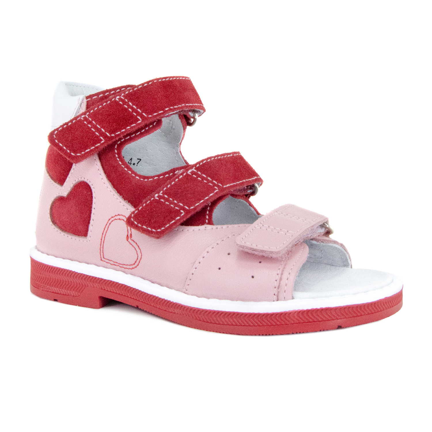 Стильные детские сандалии специально созданы для профилактики и коррекции начальных форм плоскостопия. Комфортная летняя обувь для девочек точно фиксирует стопу, плотный задник PreVent не дает заваливаться пятке. Съемная ортопедическая стелька StepEx поддерживает наружный и внутренний своды стопы и дает необходимую амортизацию при ходьбе. Ортопедические сандалии изготовлены из практичных материалов: верх - натуральная кожа и подклад - кожподкладка, что гарантирует идеальный микроклимат и износостойкость обуви.
