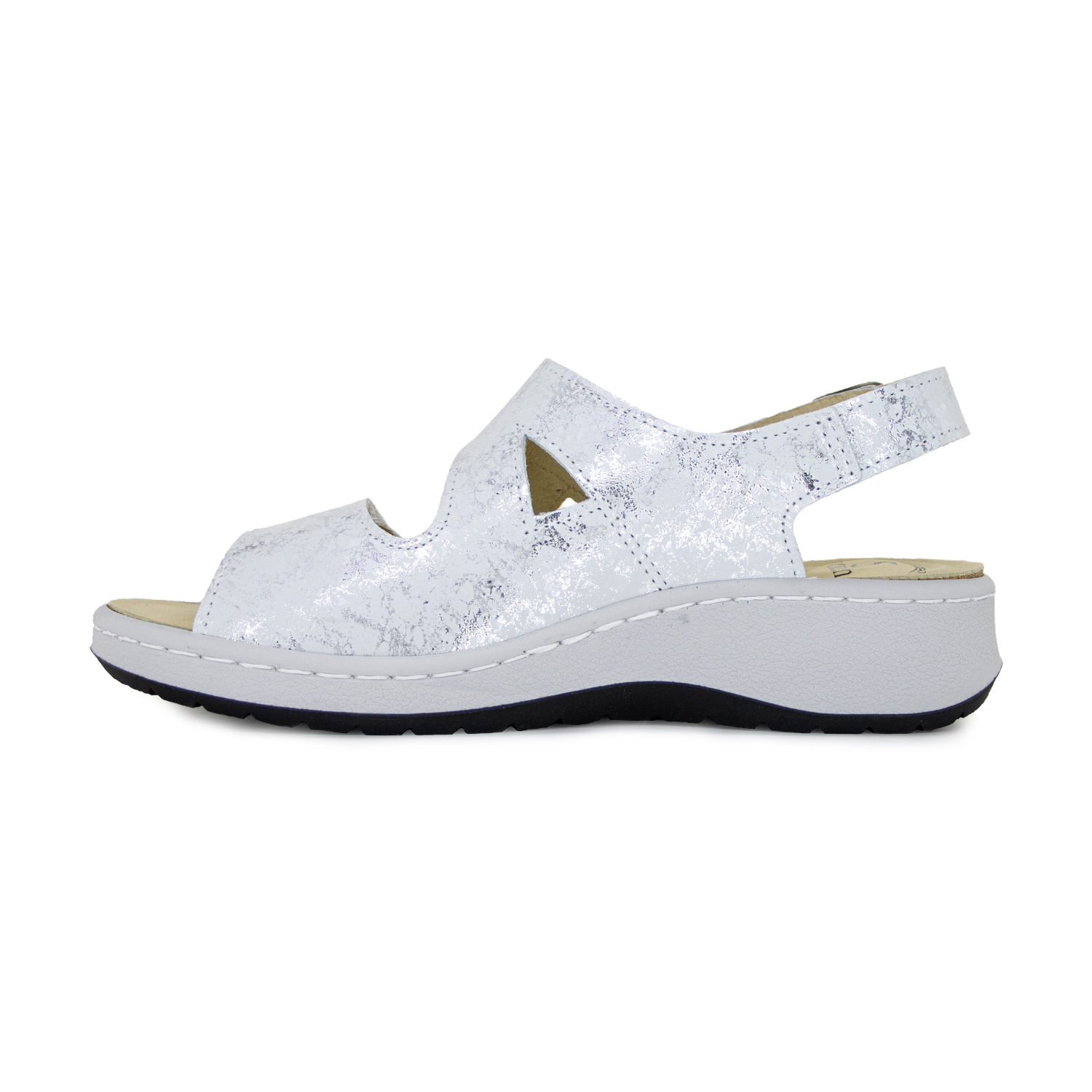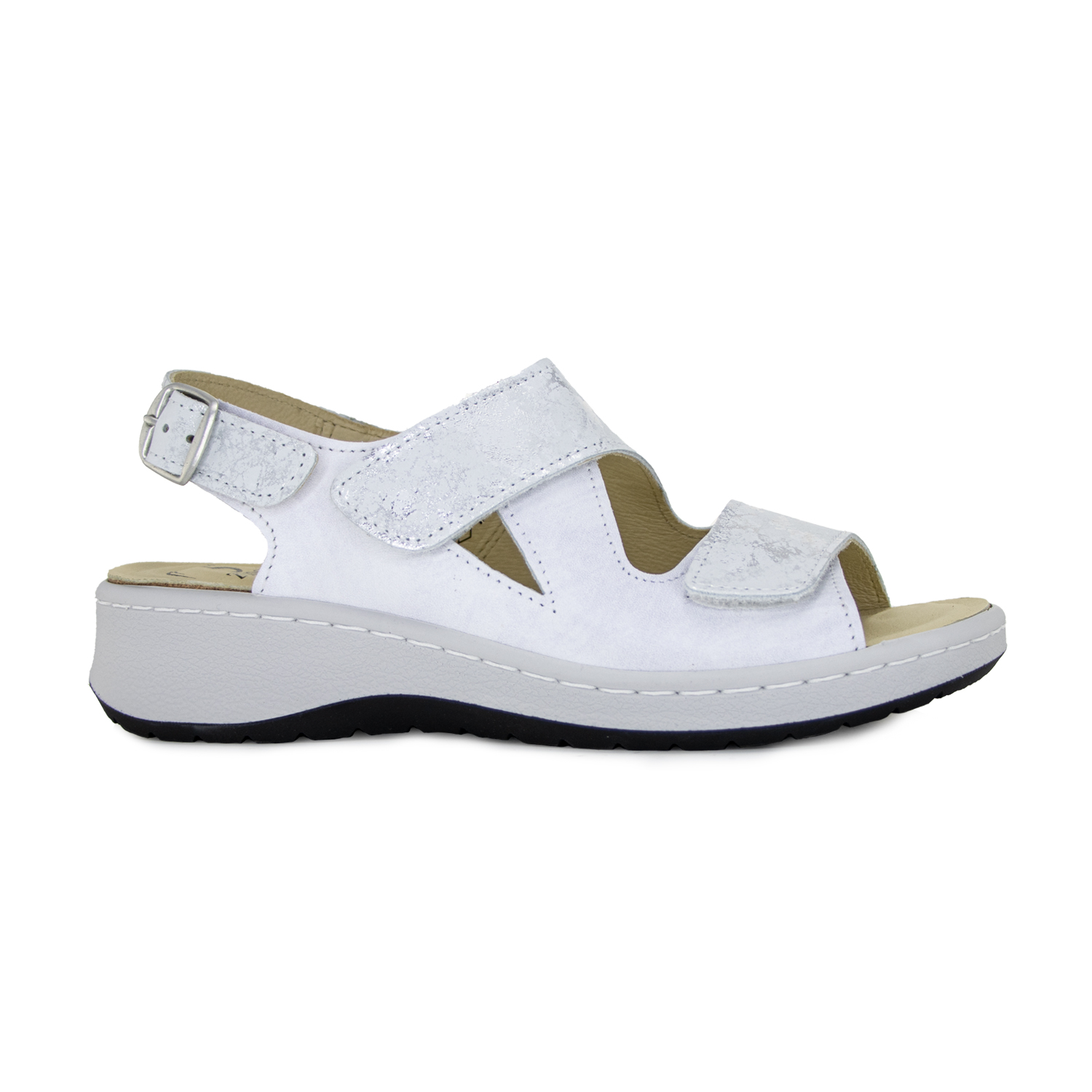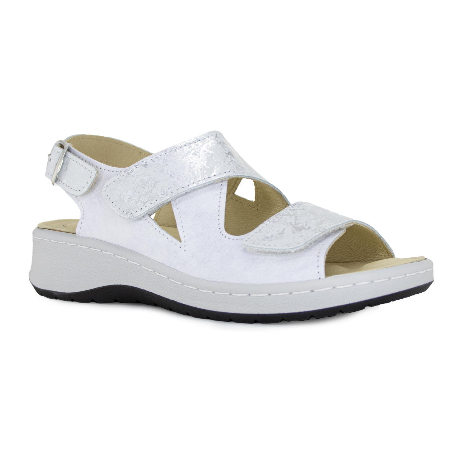 Женские босоножки Orthoboom 20323-01 белый — обувь с уникальной конструкцией, разработанной для предупреждения и корректировки нарушений строения стопы, борьбы с мозолями, натоптышами, пяточными шпорами. Амортизирующая подошва, регулировка полноты и надежная фиксация за счет удобной застежки — 2 ремня (2 липучки), анатомическая стелька обеспечивают правильное положение ноги, равномерное распределение нагрузки при ходьбе и снижение усталости. Материал верха (натуральная кожа) демонстрирует впечатляющую устойчивость к износу, а подклад (кожподкладка) не натирает даже при высокой двигательной активности. Модель разработана профессиональными дизайнерами с учетом актуальных модных трендов, ведь Лето — самое время вспомнить о стиле.